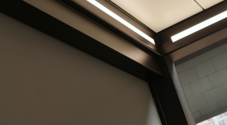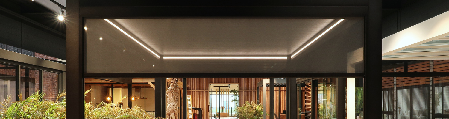 When the sun is high, the Screens filter daylight into a pleasant glow. No harsh contrast, but a gentle transition between inside and outside. When evening falls or the wind rises, they subtly enclose the space. Moving silently with intuitive control. The housing integrates seamlessly with the frame. The anthracite coloured fabric radiates calm, both on the inside and the outside. The result: a fully integrated solution for the moments when the sun is welcome. Just slightly softer.