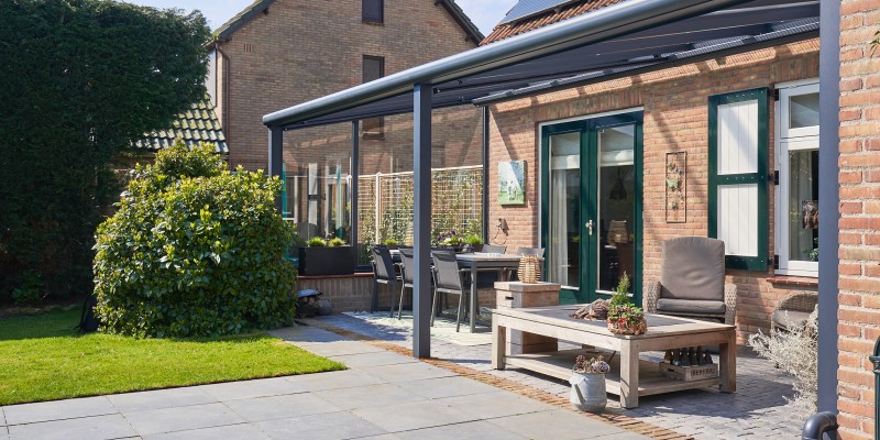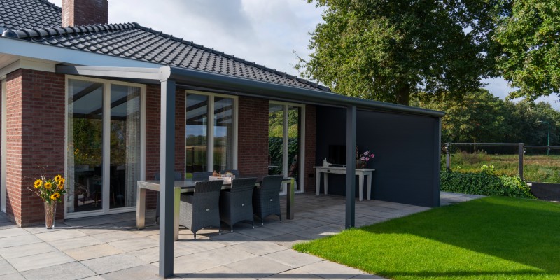 Een terrasoverkapping afgewerkt tot in de perfectie. Geheel af te stemmen op uw wensen en passend bij uw woning. Ontmoet de Bosco van Deponti.