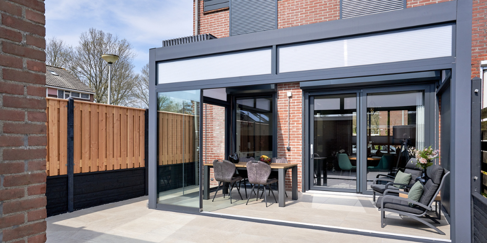 In een handomdraai de beschikking over een open ruimte boven het terras? Met één druk op de knop opent u de lamellen van de Pinela Deluxe en creëert u een cabrio-effect in uw tuin.
