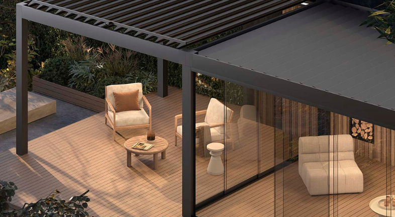 Pinela Delight posiada obrotowe lamele, które zapewniają idealną równowagę między światłem dziennym, przepływem powietrza i cieniem w przyjemny wiosenny lub letni dzień. Po zamknięciu Pinela Delight zapewnia pełną ochronę, daje poczucie komfortu i bezpieczeństwa. W pełni automatyczna regulacja dzięki sterowaniu pilotem.